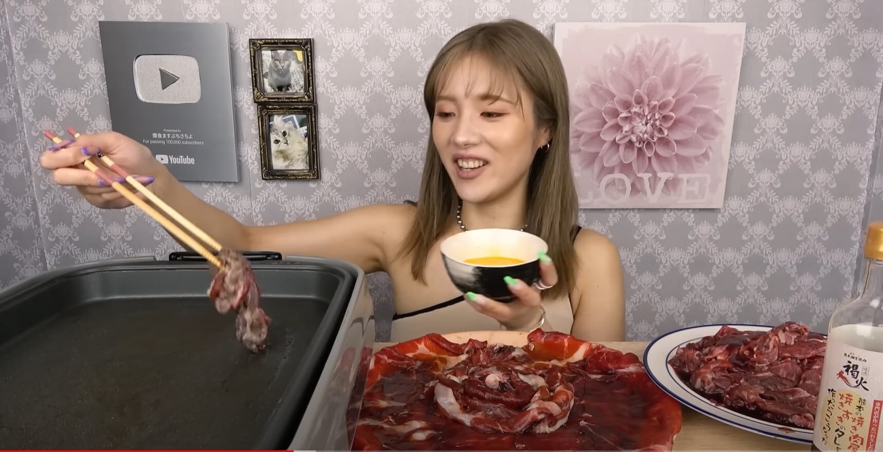 こちらのタレにお肉を5分ほどつけて焼き、お好みで生卵につけてお召し上がりください。