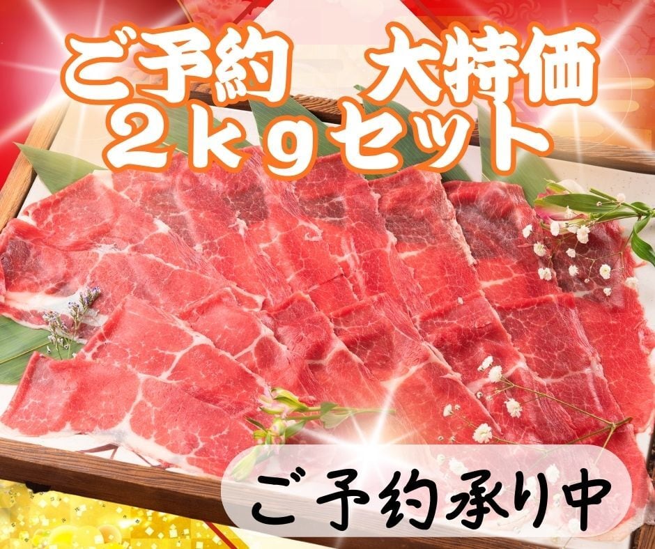 ★ご予約限定・特別価格★『大食い割2kgセット』 【生食可能】馬刺し焼きしゃぶ 1キログラム×2パック (2/11~2/14にお届け)