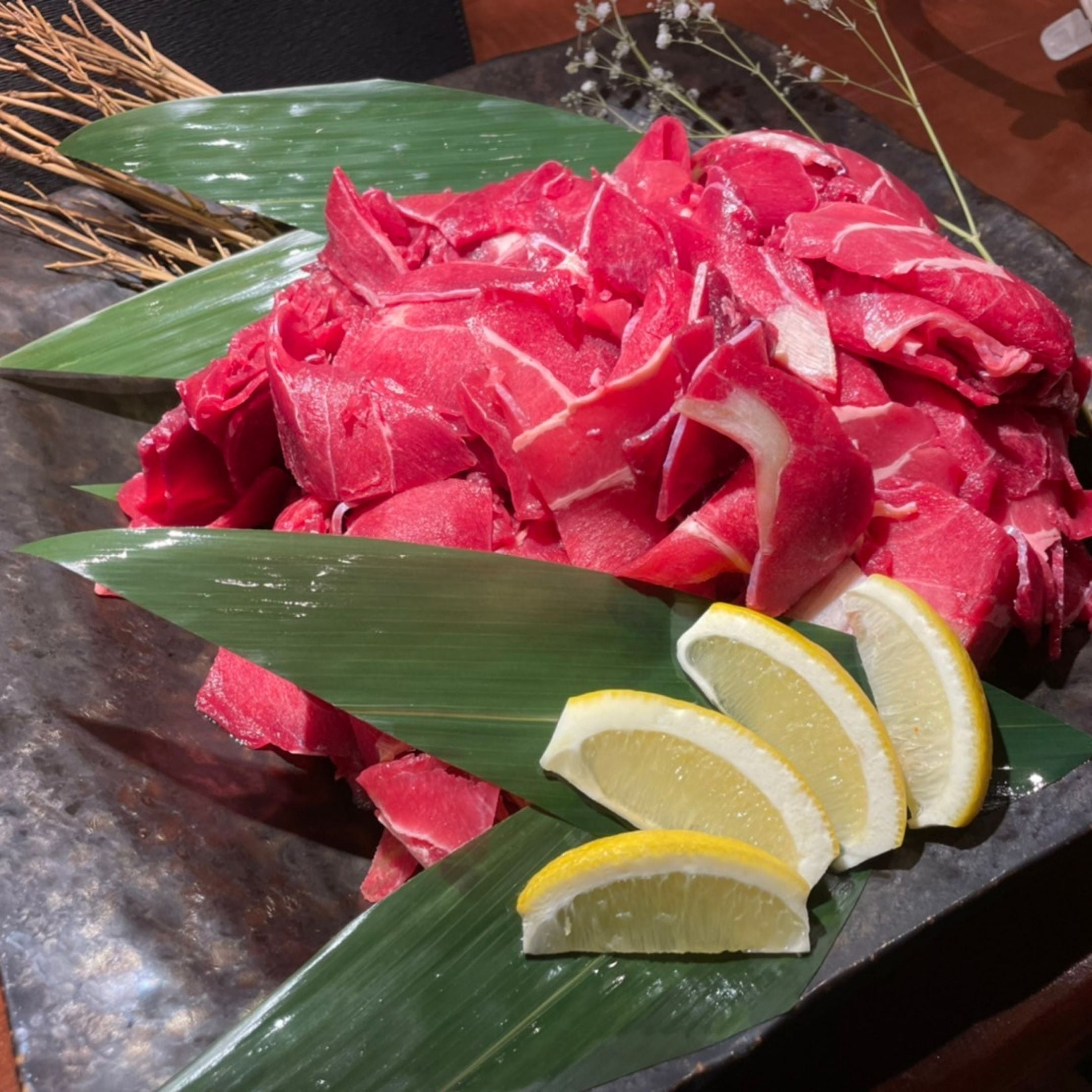 低脂質・高たんぱくの国産馬肉をスライスしてご提供します。