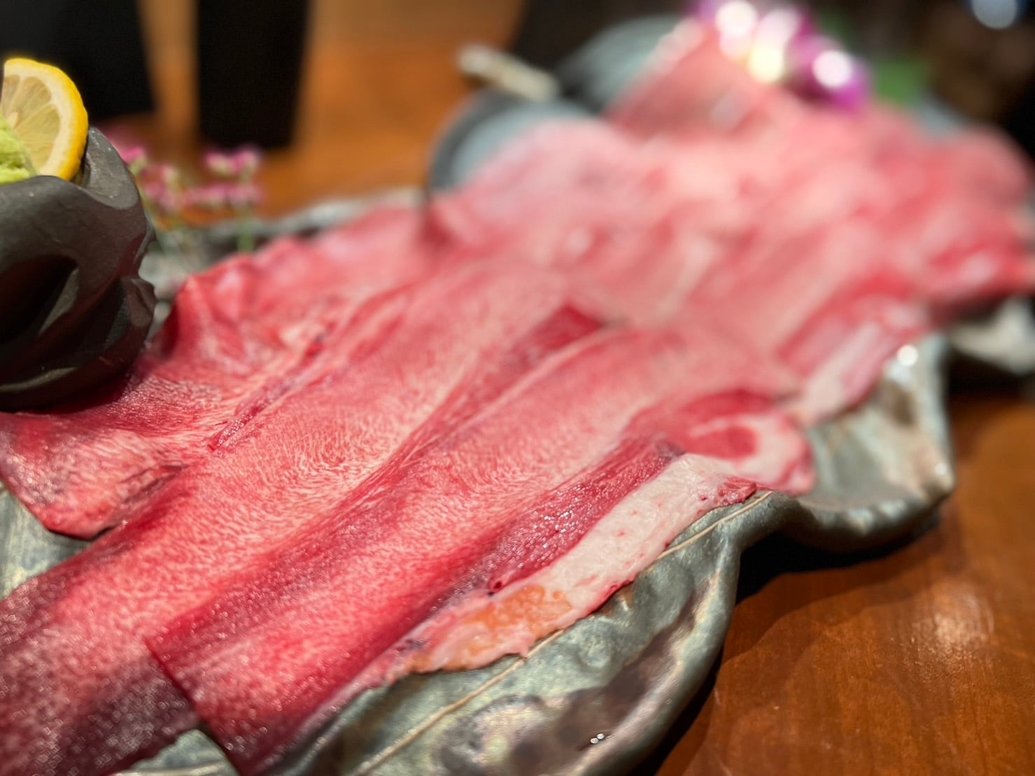 通常は輪切りにされることが多い牛たんですが、