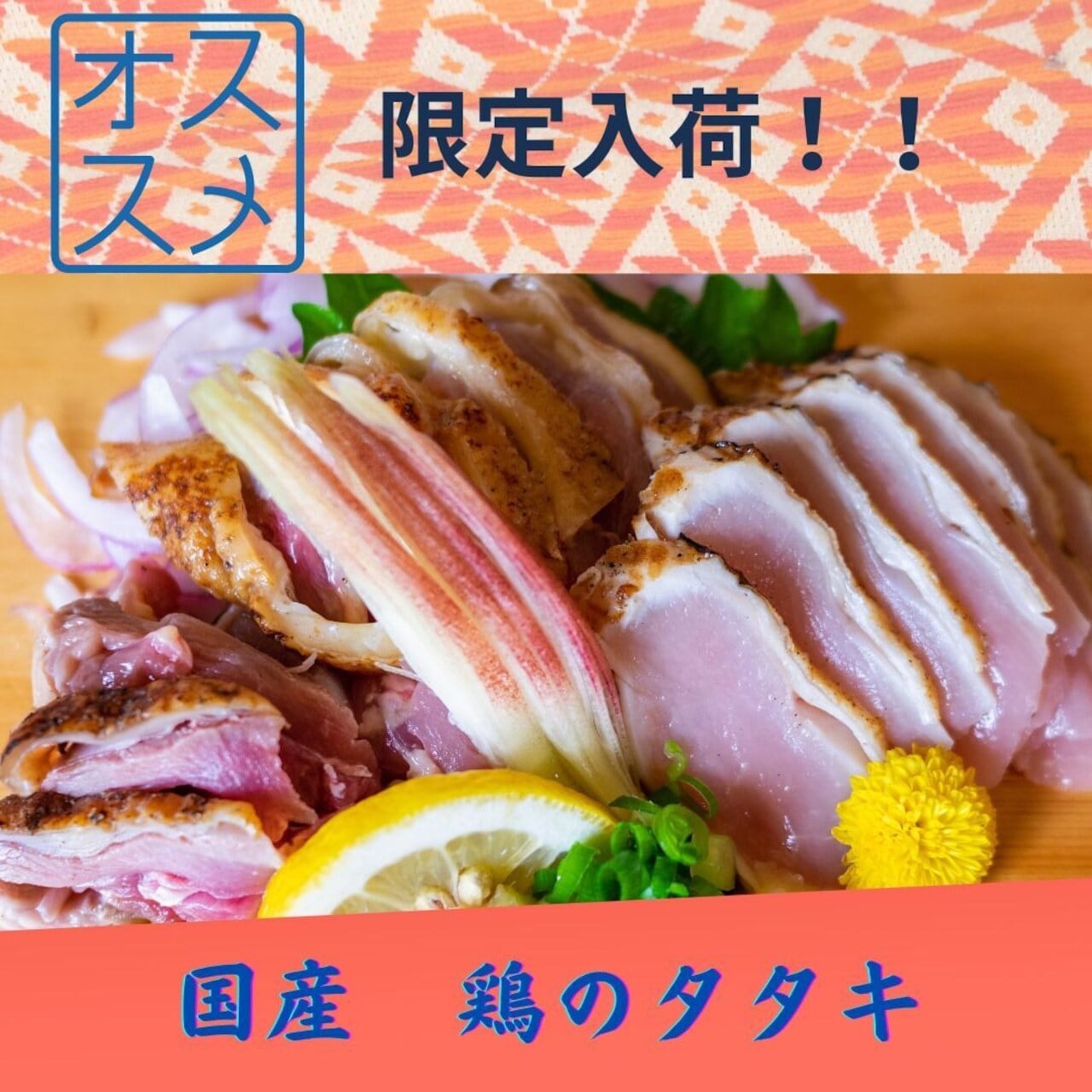国産の鶏のタタキです。
