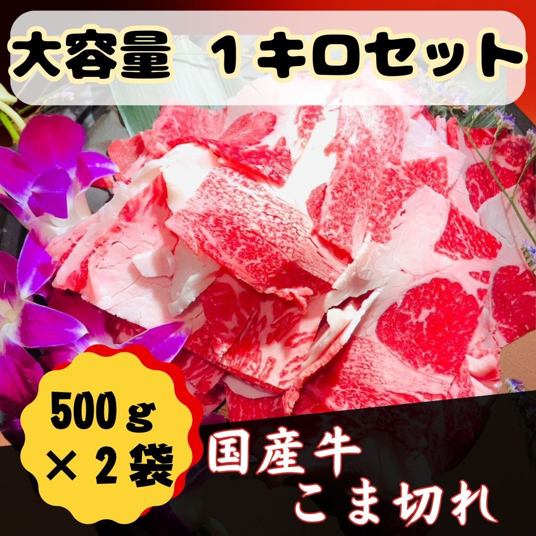 【国産牛】 牛こま切れ1kg (500gずつ袋詰め 500g×2袋)