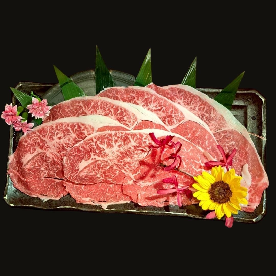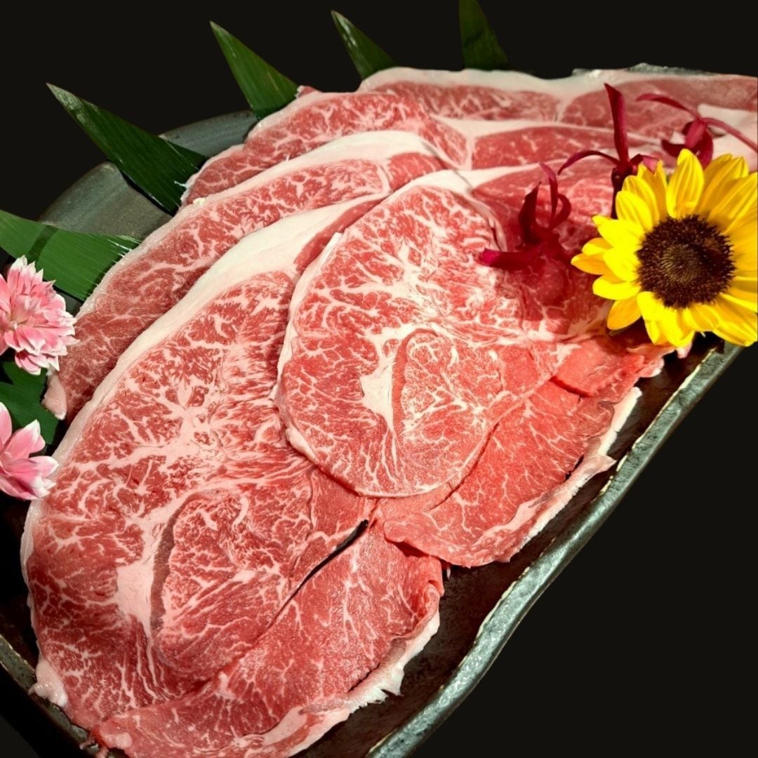 肩(ウデ)部分の赤身肉のすき焼き用薄切りスライスです。